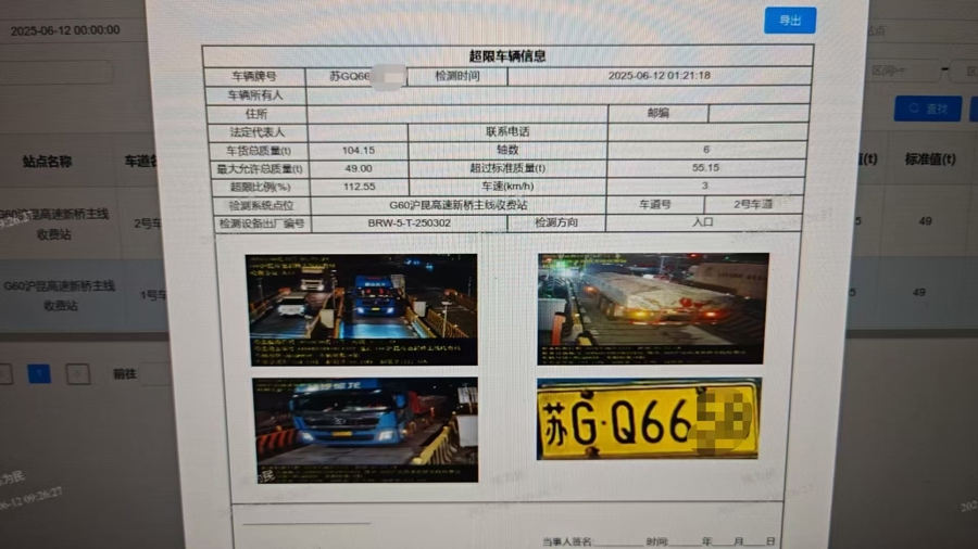 6月10日,这辆“百吨王”在山东临沂北站“翻牌”上高速后,于6月11日22时许在上海G15宝安公路下高速,随后由地面道路行驶至G60沪昆高速新桥收费站,准备从这里再上高速。