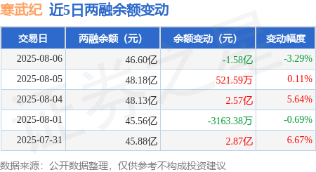 本站消息中证策略,8月6日,寒武纪(688256)融资买入2.57亿元,融资偿还4.17亿元,融资净卖出1.59亿元,融资余额46.37亿元。