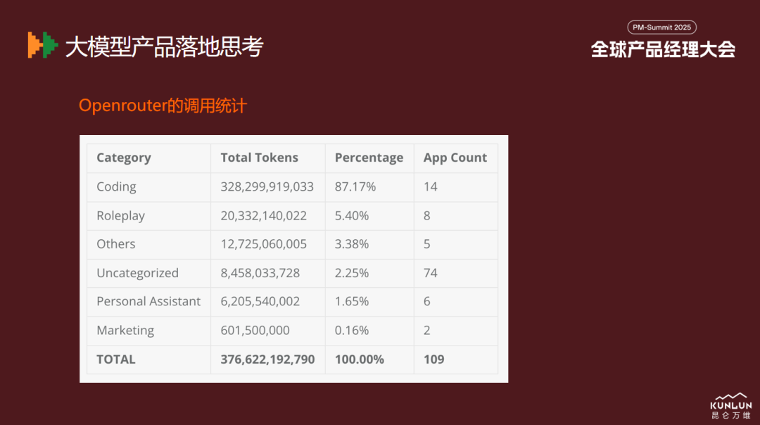 "以OpenRouter数据为例,编程类应用调用量占比高达87%,而个人助理类应用仅占很小比例。这是因为代码领域的过程数据最为完整——从GitHub上的每次提交到程序员的注释,都完整记录了思考过程。"方汉表示。