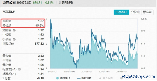 截至10月24日,券商ETF(512000)跟踪的中证全指证券公司指数市净率PB为1.57倍,仅位于近10年45.6%分位点的中低区间,估值性价比凸显。